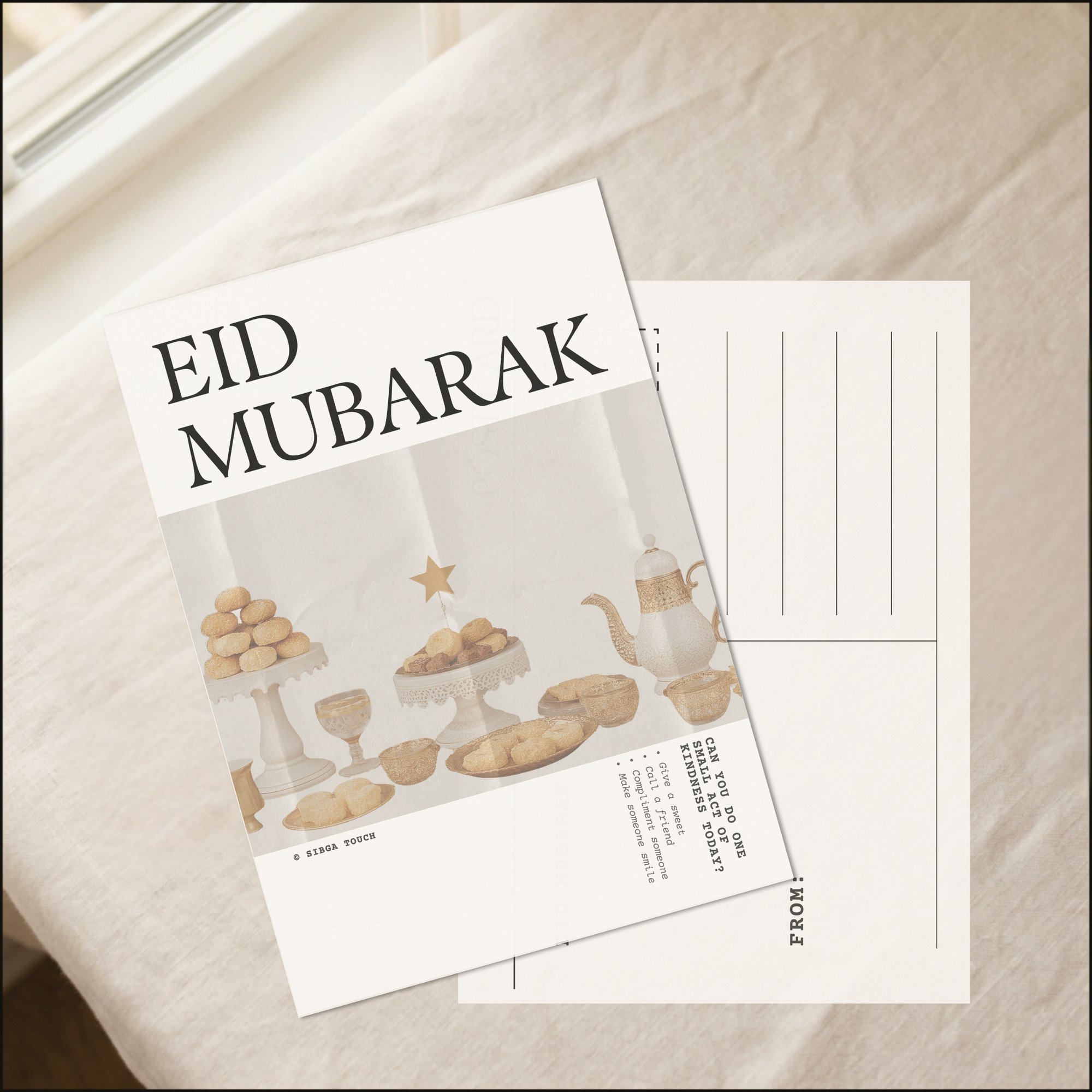 Celebrate Eid with a thoughtfully designed minimal postcard set.